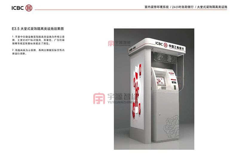 工商银行VI标准大堂式ATM机罩,是为工商银行离行大堂式ATM取款机设计的产品方案。